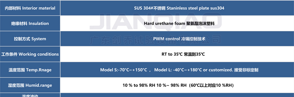 產品型號:JQTH-1200L(非標定制款) 品牌:劍 喬 用途:可程式恒溫恒濕試驗箱 JQTH-1200L(屬于:雙開門非標定制款)主要用來測試各種材料耐熱、耐寒、耐干、耐濕的性能。本機采用智能中英俄文顯示7寸彩色觸控式屏幕畫面,操作簡單,程序編輯咨詢熱線:13829135130