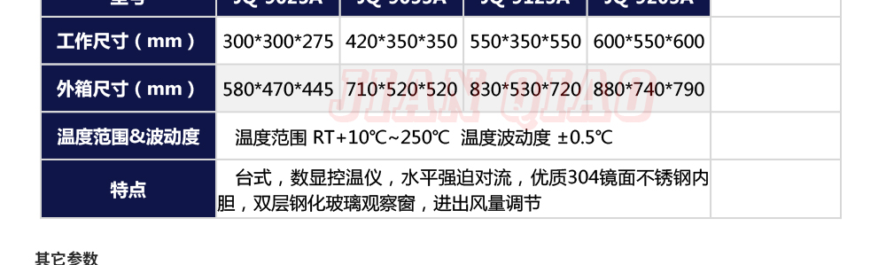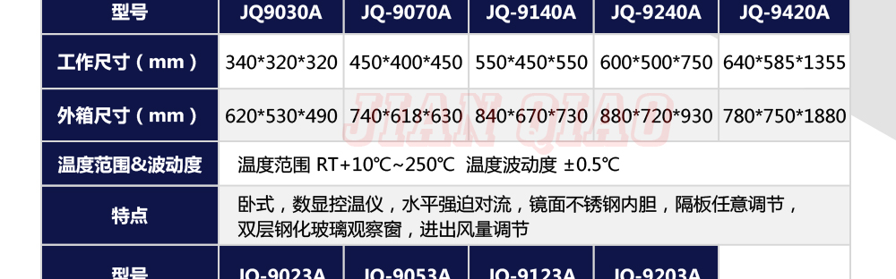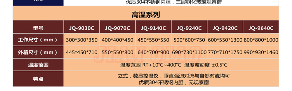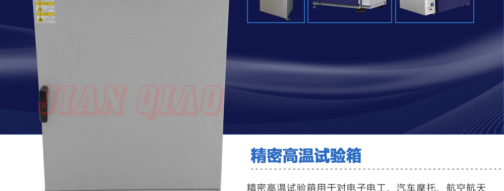 產品型號:JQ-9030 品牌:劍 喬 用途:精密高溫試驗箱用于對電子電工、汽車摩托、航空航天、橡膠、塑膠、金屬、船舶兵器、高等院校、科研單位等相關產品的零部件及材料在高溫恒溫變化的情況下,檢驗其各項性能指標咨詢熱線:13829135130