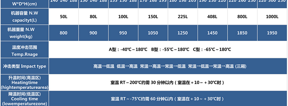 三廂式冷熱沖擊試驗箱型號命名及參數表