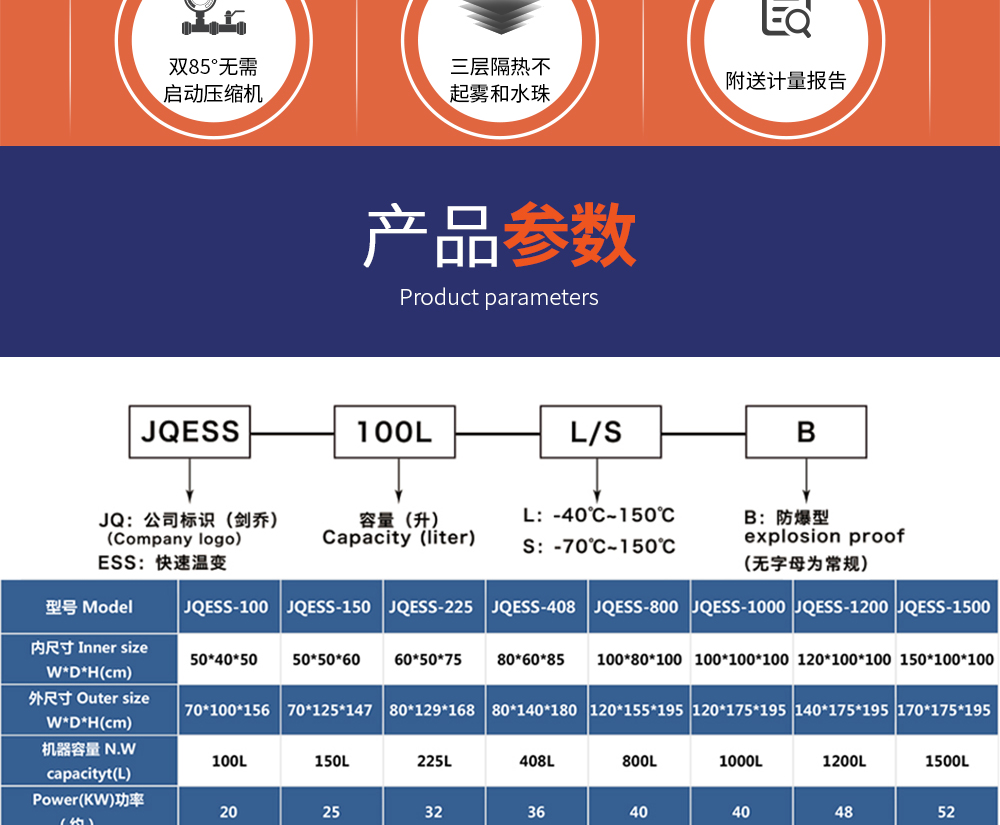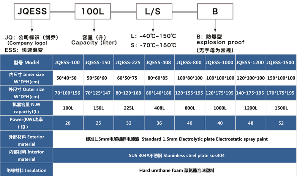 快速溫變?cè)囼?yàn)箱型號(hào)命名說明 及 參數(shù)表
