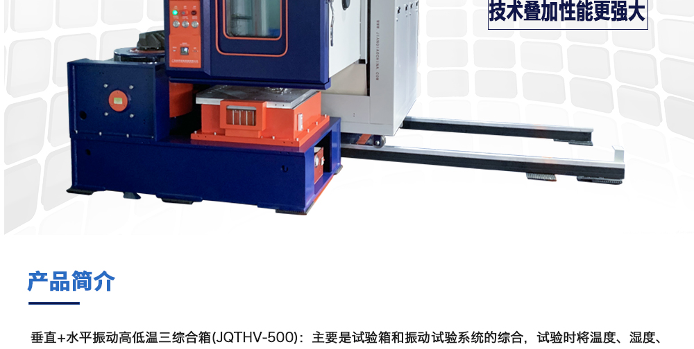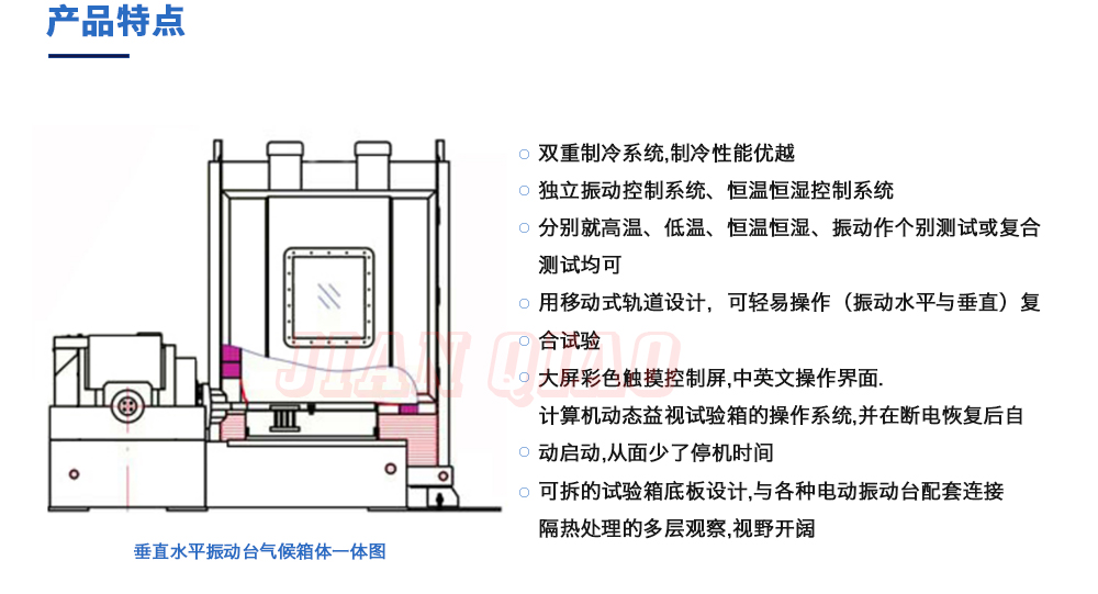 產(chǎn)品型號:JQTHV-500 品牌:劍 喬 用途:垂直+水平振動高低溫三綜合箱(JQTHV-500):主要是試驗箱和振動試驗系統(tǒng)的綜合,試驗時將溫度、濕度、振動(高溫或低溫),(正弦振動或隨機振動)以及電應(yīng)力按規(guī)定的周期綜合在同一氣候試驗箱中施加到樣品上進行溫度、濕度、振動的“環(huán)境仿真”試驗。咨詢熱線:13829135130